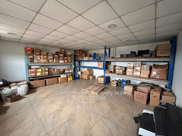 This versatile commercial property with road frontage features a spacious shop layout, highlighted by a large showroom. The property includes a dedicated dispatch area. For customer convenience, there are separate mens and womens bathrooms. Attached to the showroom is an expansive warehouse with high ceilings, providing ample storage space and a kitchenette. There are bathrooms for the staff as well as an outside toilet that is available for the truck drivers. Upstairs, there are further storage areas as well as a large room that can be used as office space or a as a boardroom with a strong room.