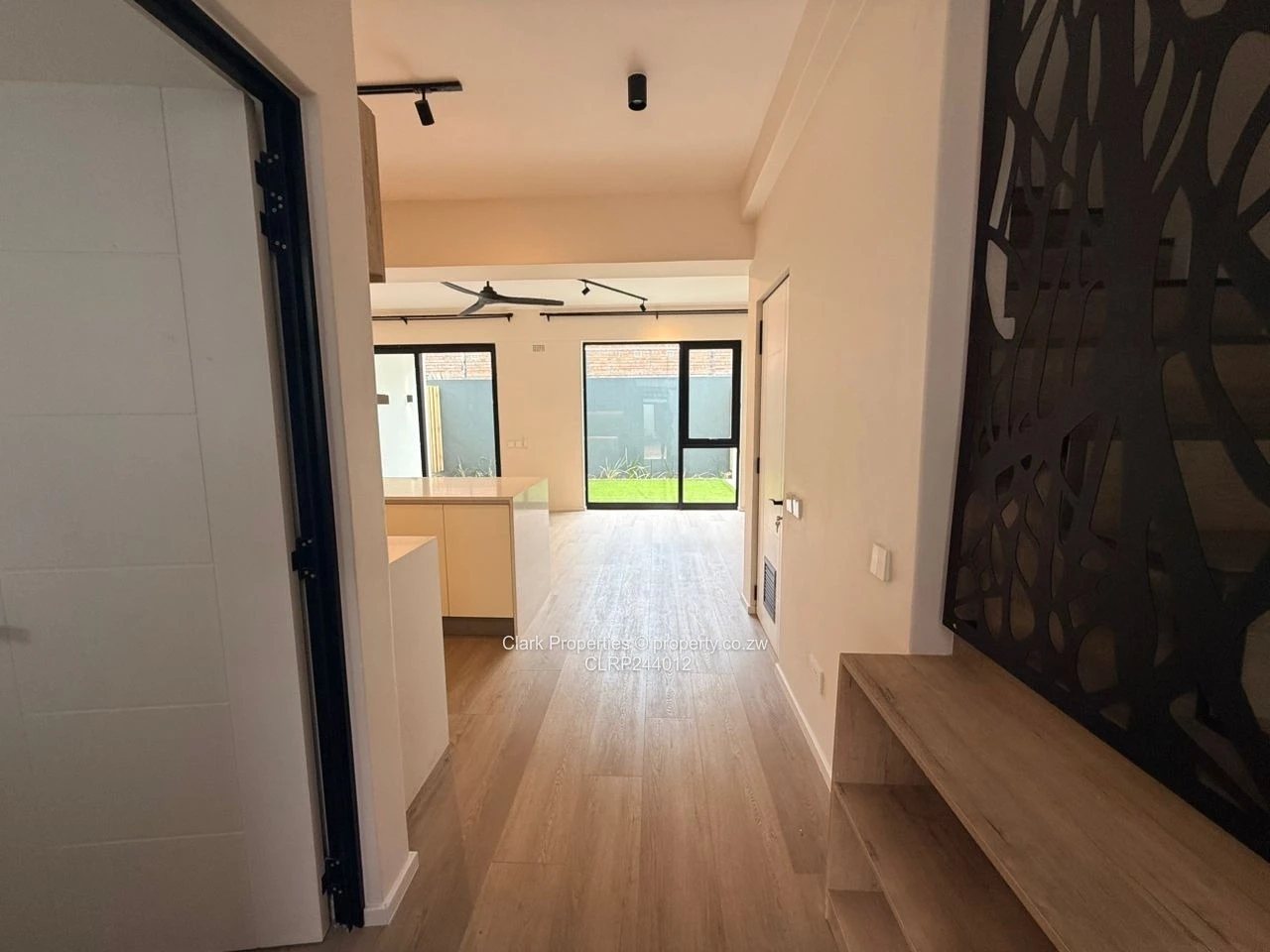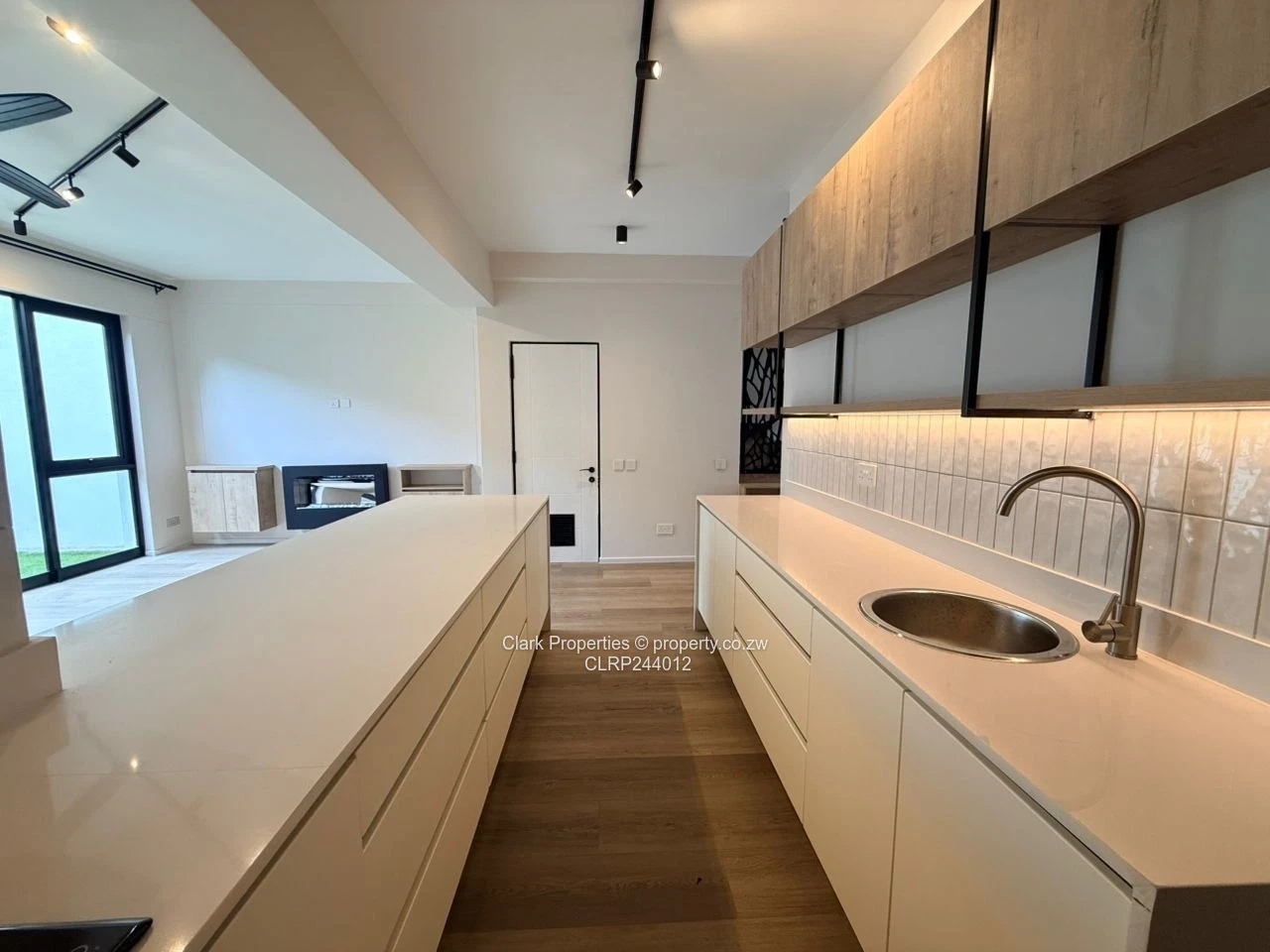 This exceptional residence is perfectly positioned in the heart of Vainona, just moments from Sam Levy Village and Arundel Shopping Centre. The ground floor opens with a welcoming guest toilet and an expansive open-plan lounge, dining, and kitchen area. The kitchen is fitted with a four-plate gas stove, an oven with gas at the bottom and electric at the top, an extractor fan, and a double-door fridge. A scullery with a washing machine and ample storage under the stairs adds practicality. The lounge, warmed by a gas fireplace, features doors that open onto a verandah and a ceiling fan.