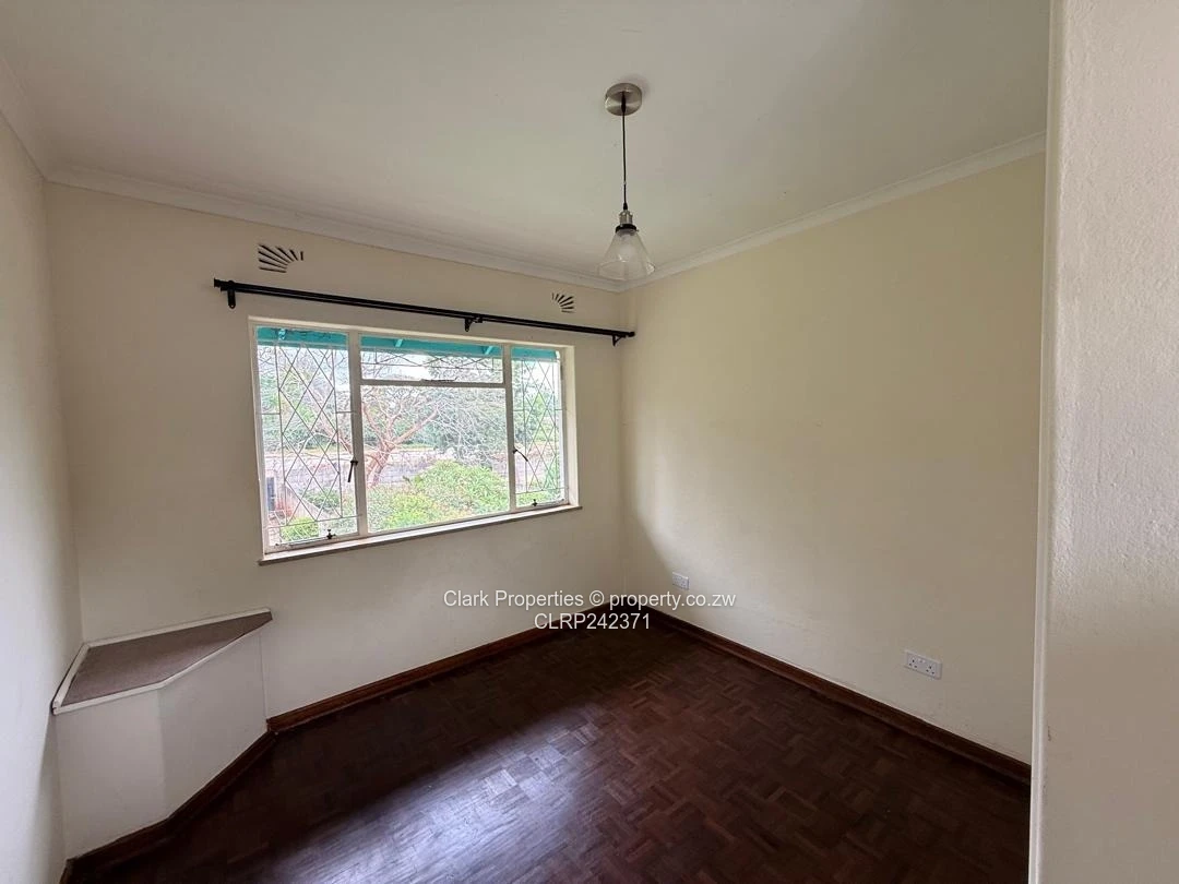 Nestled within a secure complex of eight units, this duplex features a welcoming lounge with glass doors that open onto a closed verandah leading to the garden. The kitchen is fitted with a security gate, and prepaid ZESA meter.