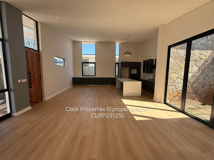 Step into a spacious open-plan lounge, dining and kitchen area providing a modern living and effortless flow. High ceilings enhancing natural light and space. The kitchen comes fitted with a 5-plate gas stove and oven, complemented by a scullery and walk-in pantry perfect for everyday convenience. Large doors open out to a private courtyard, creating a seamless flow between indoor and outdoor spaces.