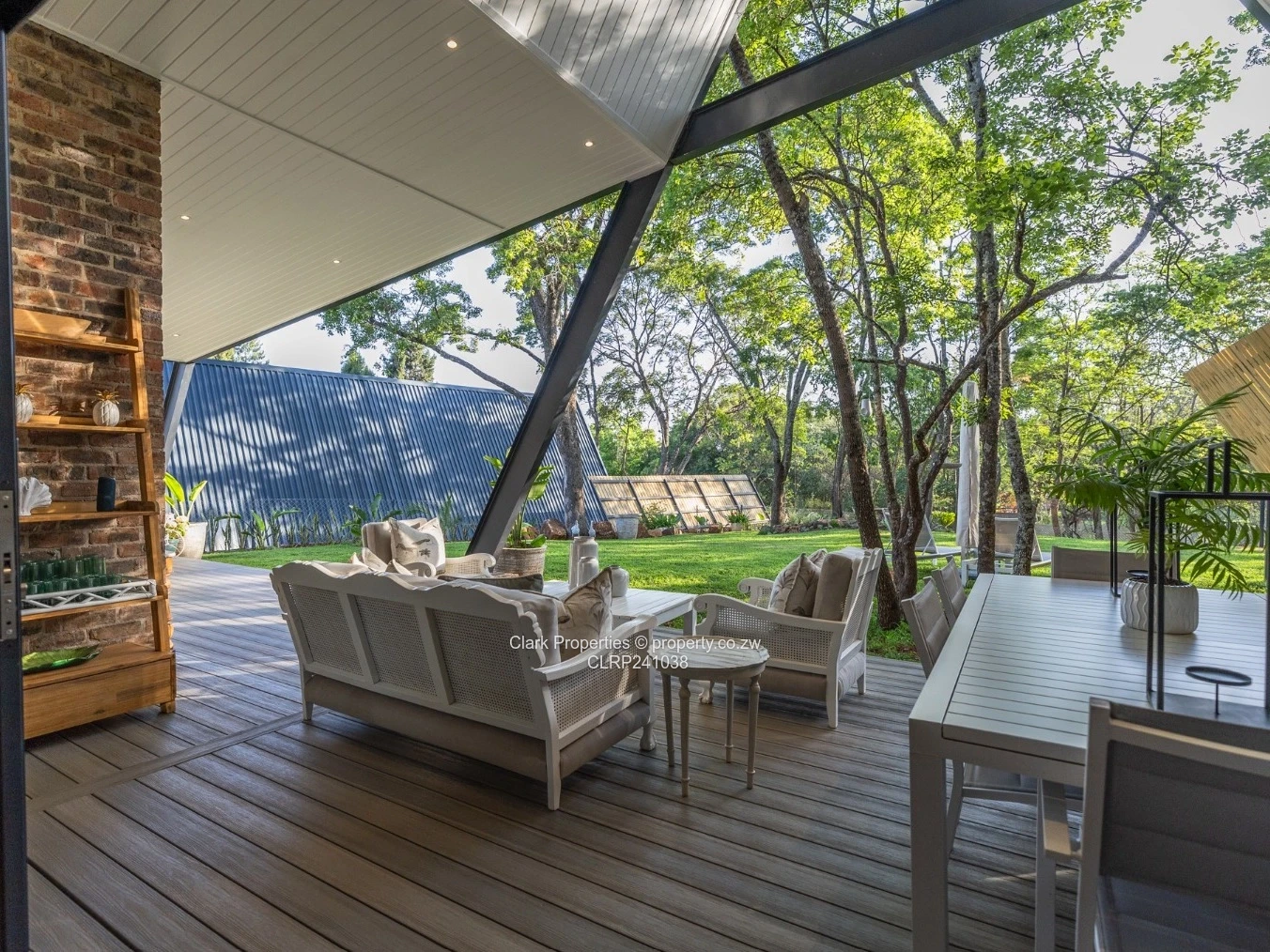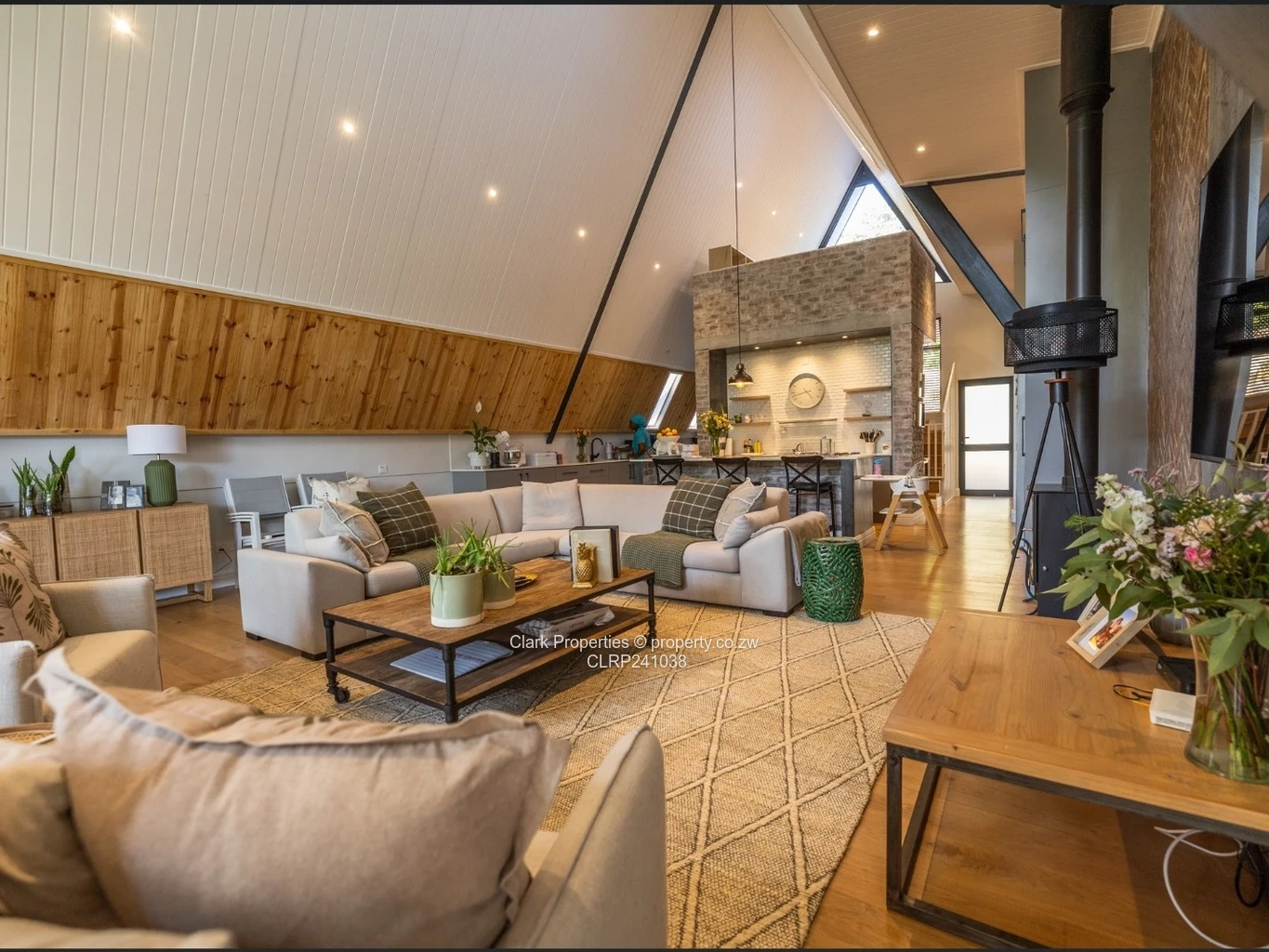Clark Properties proudly presents this contemporary residence, set within an exclusive complex of eight units. The home features an open-plan dining, lounge, and kitchen area, fitted with a five-plate gas stove and oven, as well as a scullery and utility yard. The lounge includes a small bar area and opens outside, blending interior elegance with the beauty of the garden and veranda.