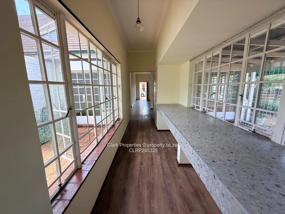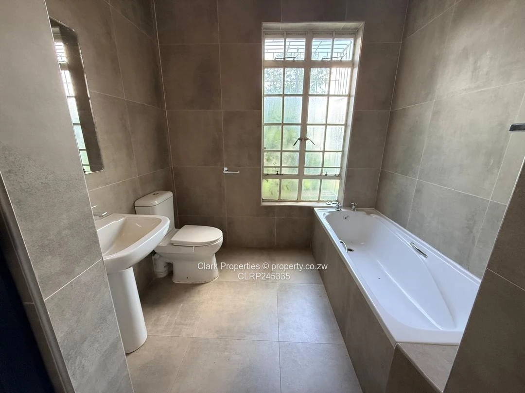 The kitchen is thoughtfully designed, with a door leading to a small washing area. Also equipped with prepaid ZESA meter and 3 KVA solar system to reduce electricity expenses.