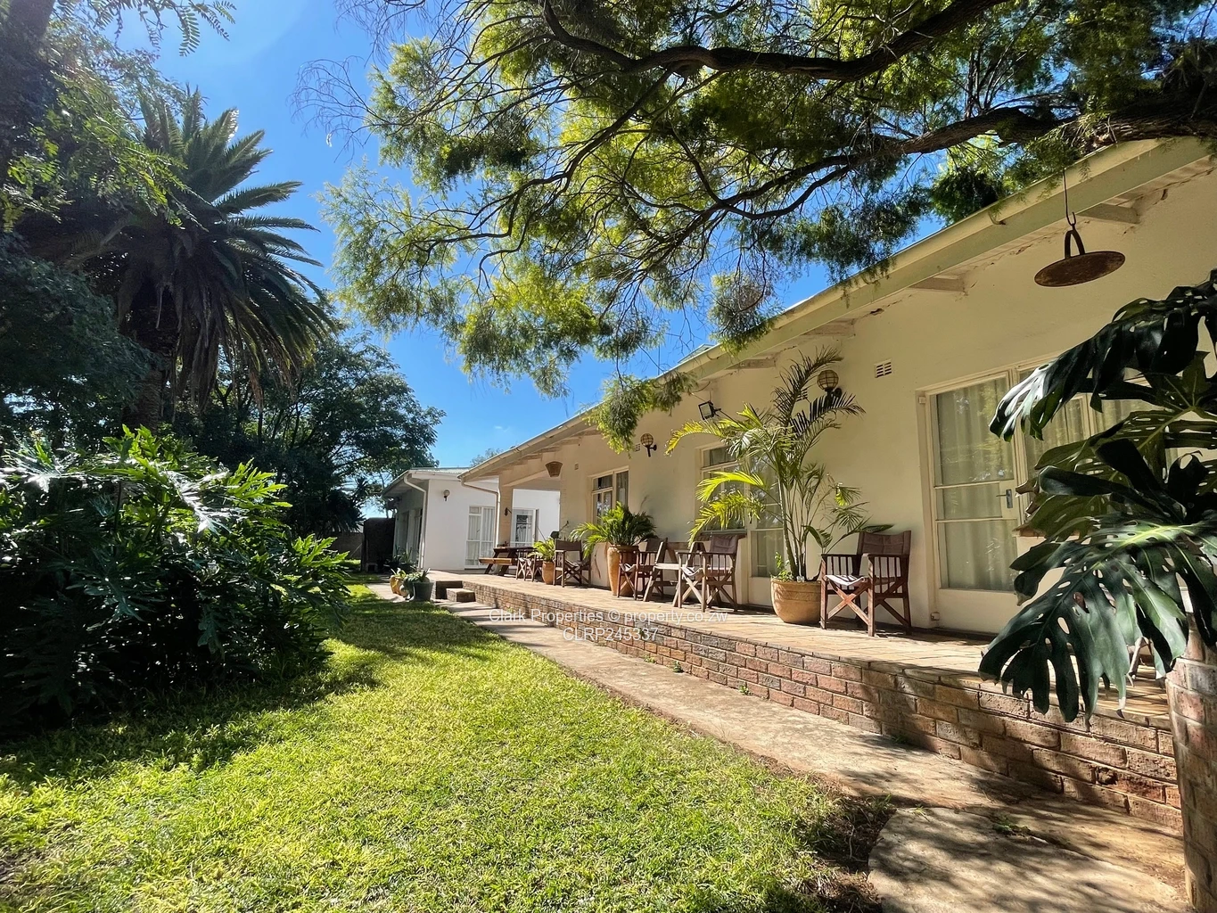 There is a two bedroom cottage with its own bathroom, kitchen, dining room & lounge. There is a car port and own entrance. This cottage is fenced off and currently tenanted until end of May. It has its own ZESA meter.