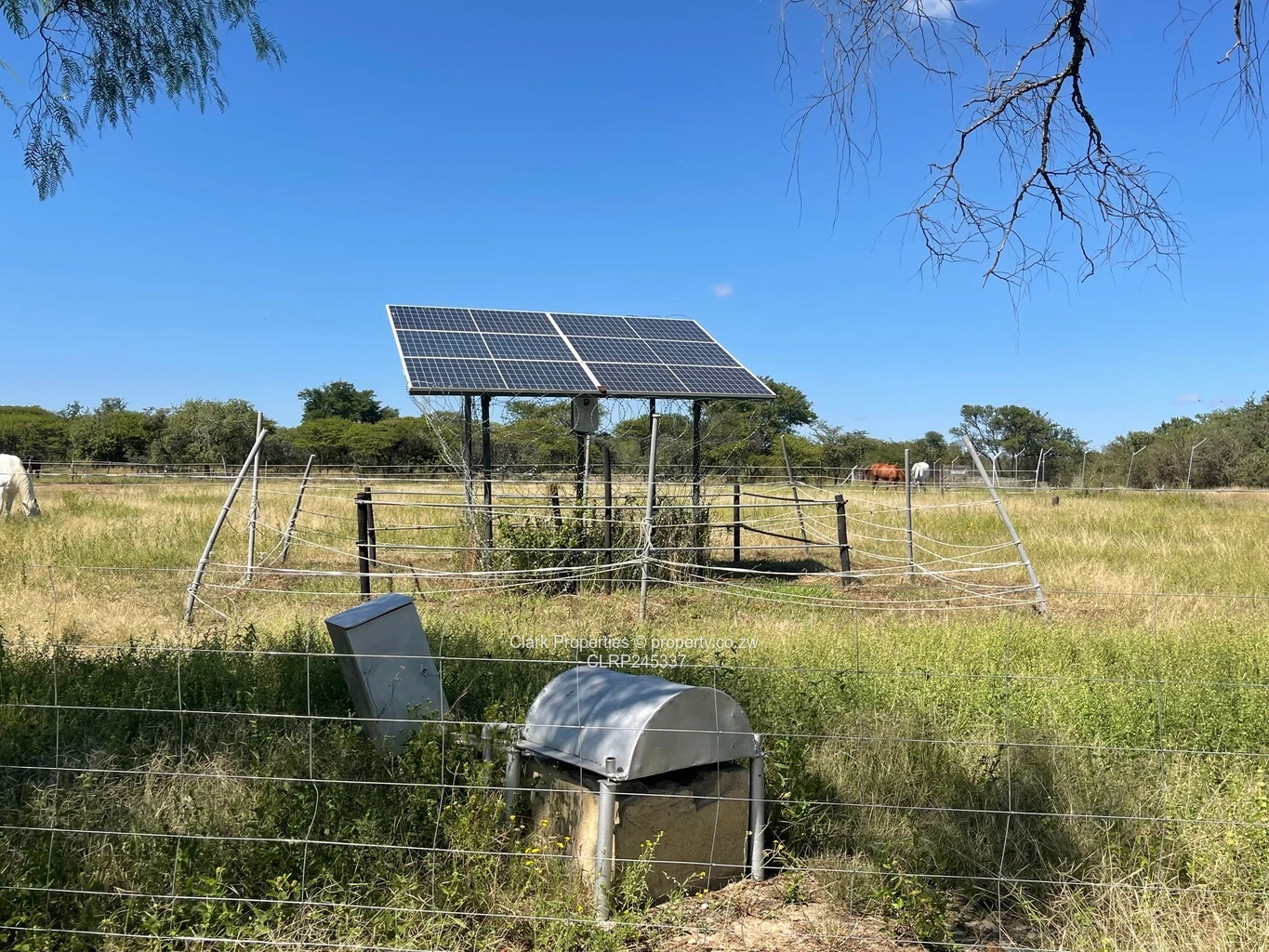The farm is currently successfully functioning as a dairy & horse breeding farm. It is neatly fenced on all sides with diamond mesh and Bonnox fencing. There is one borehole running on mains electricity plus three functional boreholes that run on solar power, another one running on ZESA, and three others that are ready for use but not commissioned, as they do not need to use them. The surrounding farms have dams on them, which feed the aquifers and keep the water levels up.