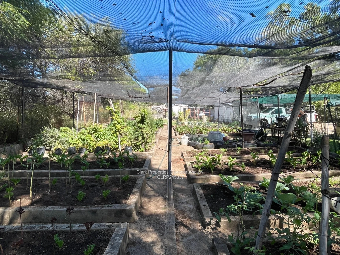 There are two lock-up car ports at the back of the house and another three car ports currently being used as a workshop area. There is a fairly large swimming pool, functional but not in use. There is a large neat vegetable garden near the house that is enclosed and a chicken run.