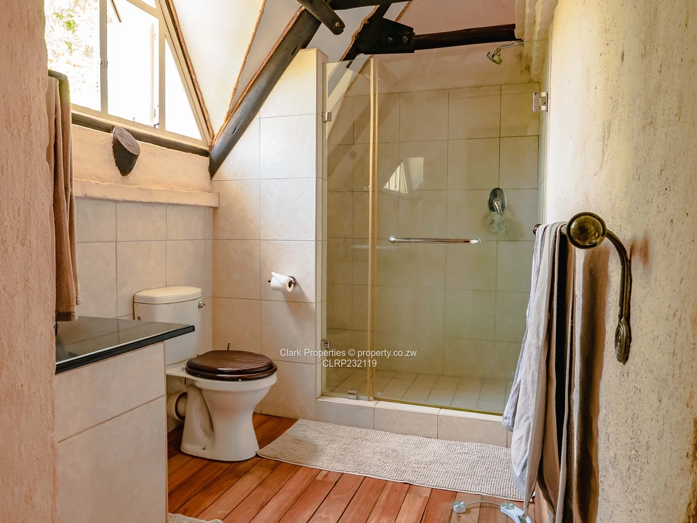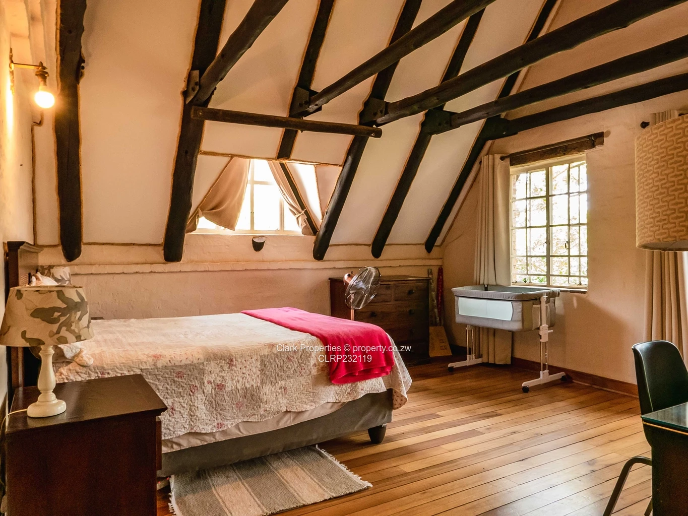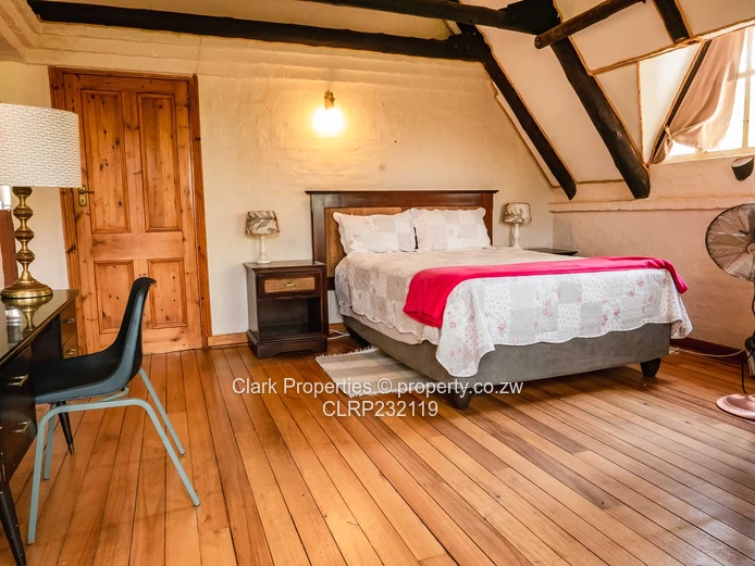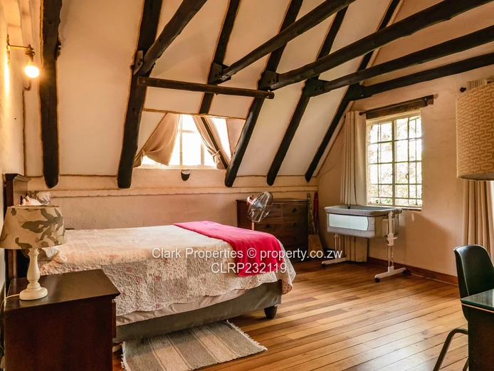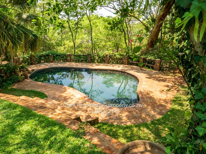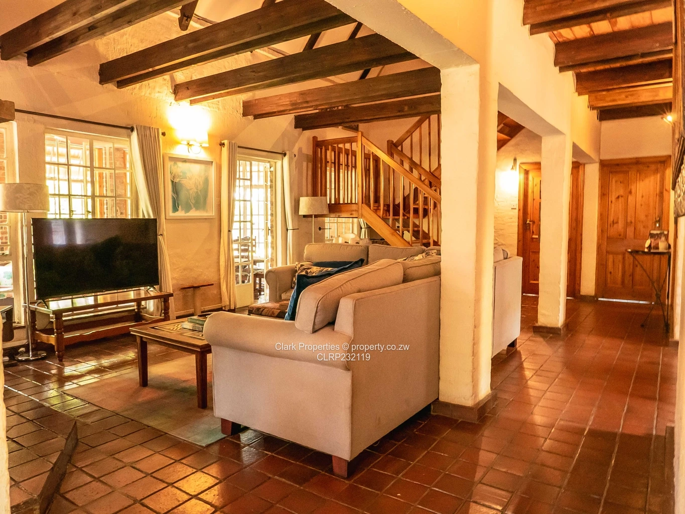 Set on 1 acre of land, this double story home is set in a quiet, established suburb. Nestled among beautiful msasa trees is a charming open face brick home. With its cromadeck roofing and elevated position peeking above the tree line. This residence exudes warmth and character. It offers both intimate family life as well as lending itself to entertaining.