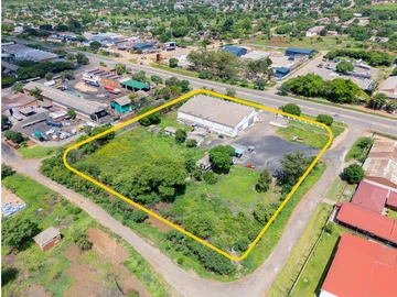The property features a well-appointed office block, which includes a reception area, three offices, a kitchenette, male and female ablutions, and a 3KVA solar system powering the office section. Attached to the office is a spacious, multi-purpose warehouse, which can be adapted to suit various business needs.